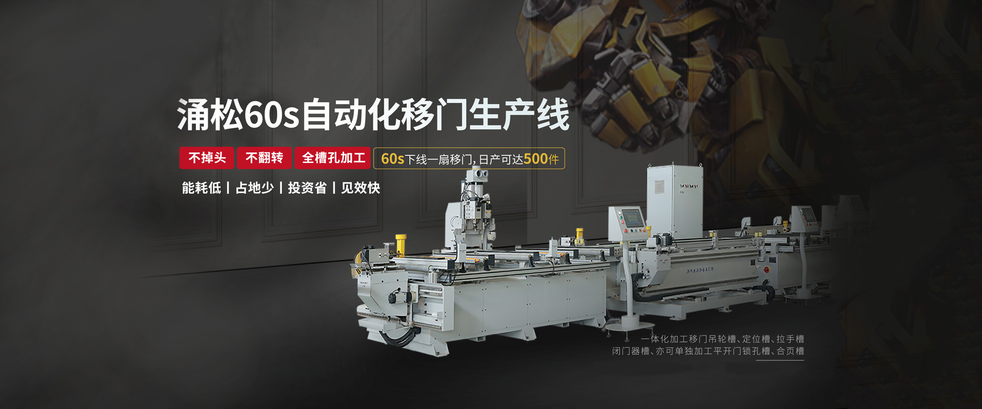 2021-01-30涌松榮獲2020金智獎(jiǎng) 涌松自動(dòng)化建立了全國首臺(tái)全自動(dòng)移門加工中心,以強(qiáng)大的兼容性適用多項(xiàng)移門五金件槽孔加工,其具備的單機(jī)多功能多軸加工工藝,可以提高一倍的產(chǎn)能,對(duì)于移門加工自動(dòng)化具有變革性意義。